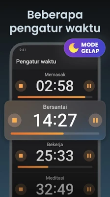 Menavigasi berbagai tugas dan proyek yang menuntut perhatian seringkali terasa menantang. Aplikasi Timer + Stopwatch: Jam Digital hadir sebagai asisten pribadi Anda untuk mengelola setiap detik dengan sempurna. Bayangkan mampu mengawasi beberapa aktivitas secara bersamaan, dari sesi memasak yang kompleks hingga jadwal belajar yang ketat, tanpa pernah melewatkan satu momen pun. Fitur pengatur waktu canggih kami dirancang untuk memberdayakan Anda, memungkinkan pengaturan dan pemantauan banyak timer secara simultan. Ini adalah solusi definitif untuk merebut kembali kendali atas agenda harian Anda, memastikan setiap segmen waktu termanfaatkan secara optimal.